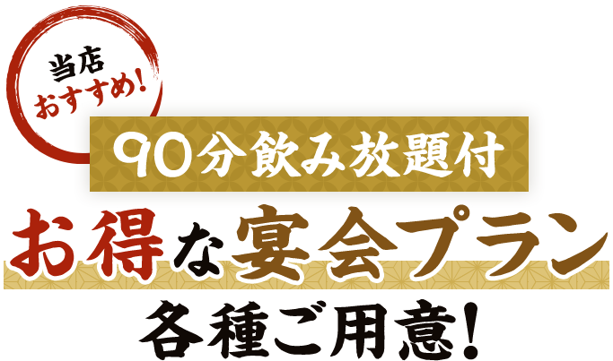 2時間飲み放題(90分)付コースを4,950円からご用意いたしました!